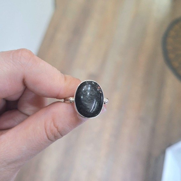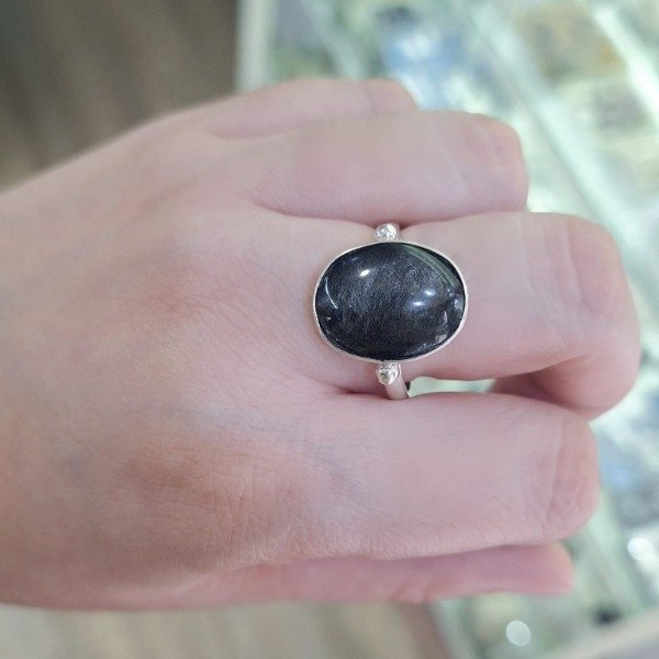 Anillo de Obsidiana Plateada engrazada en Plata 925.
