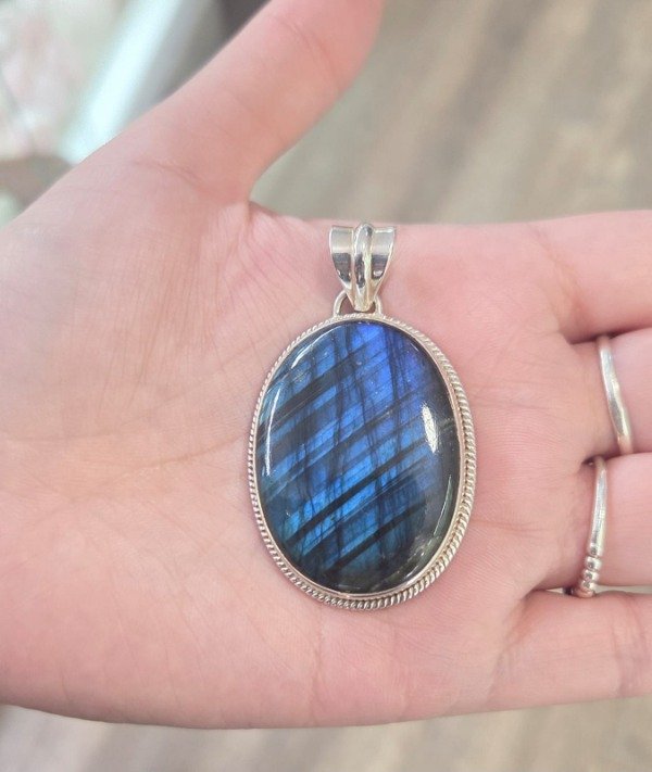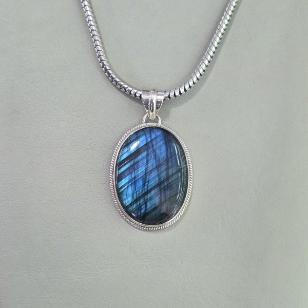 Dije de Labradorita azul XL con engarce de Plata 925.