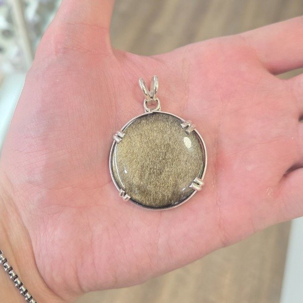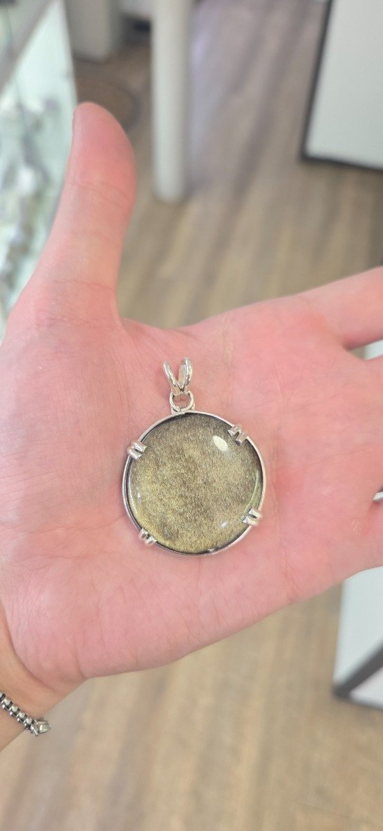 Dije de Obsidiana dorada Extra Grande engazada en Plata 925.